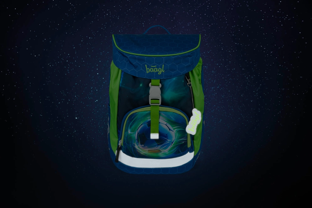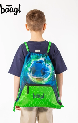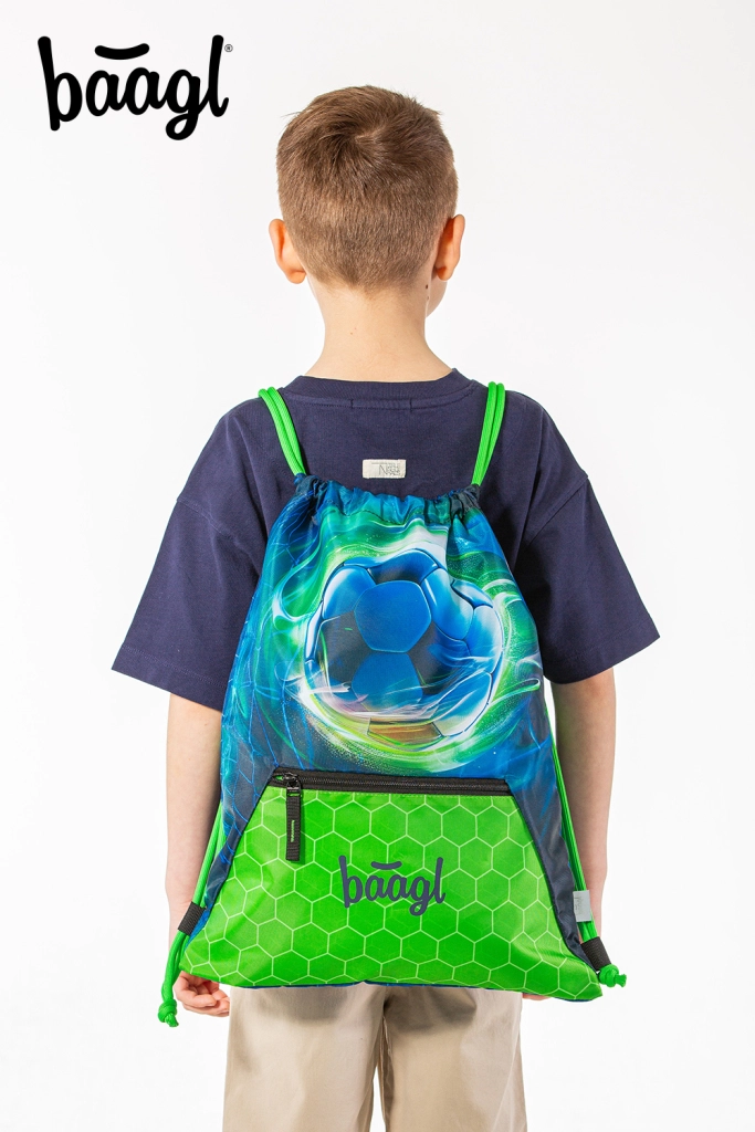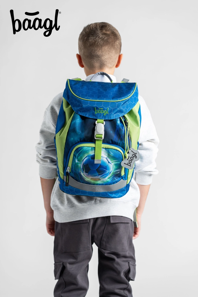 Kompletni školski set za male nogometaše sadrži ultralaki ruksak BAAGL AIRY, jednopregradnu pernicu, vrećicu za obuću, dječju pregaču i novčanik za oko vrata. Zahvaljujući ergonomično oblikovanim leđima s AIRFLOW ERGO SUSTAVOM, prsnom i lumbalnom trakom te težini od svega 750 g, ruksak je idealan od 1. razreda. Set nudi vodoodbojne materijale, reflektirajuće elemente za sigurnost i praktične detalje za svaki školski dan.