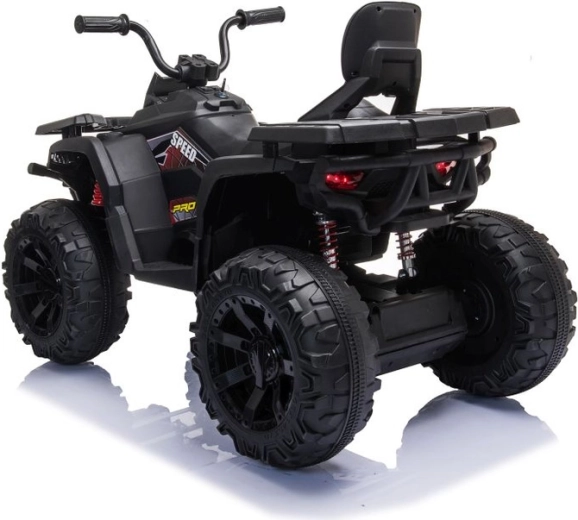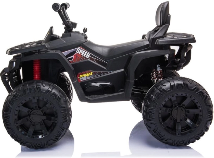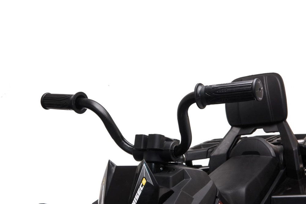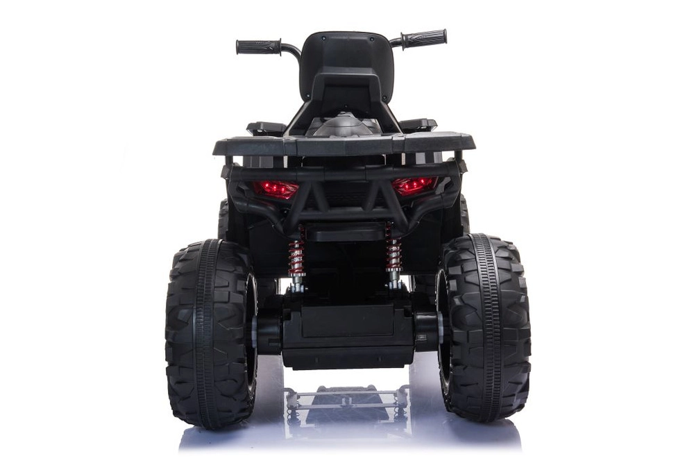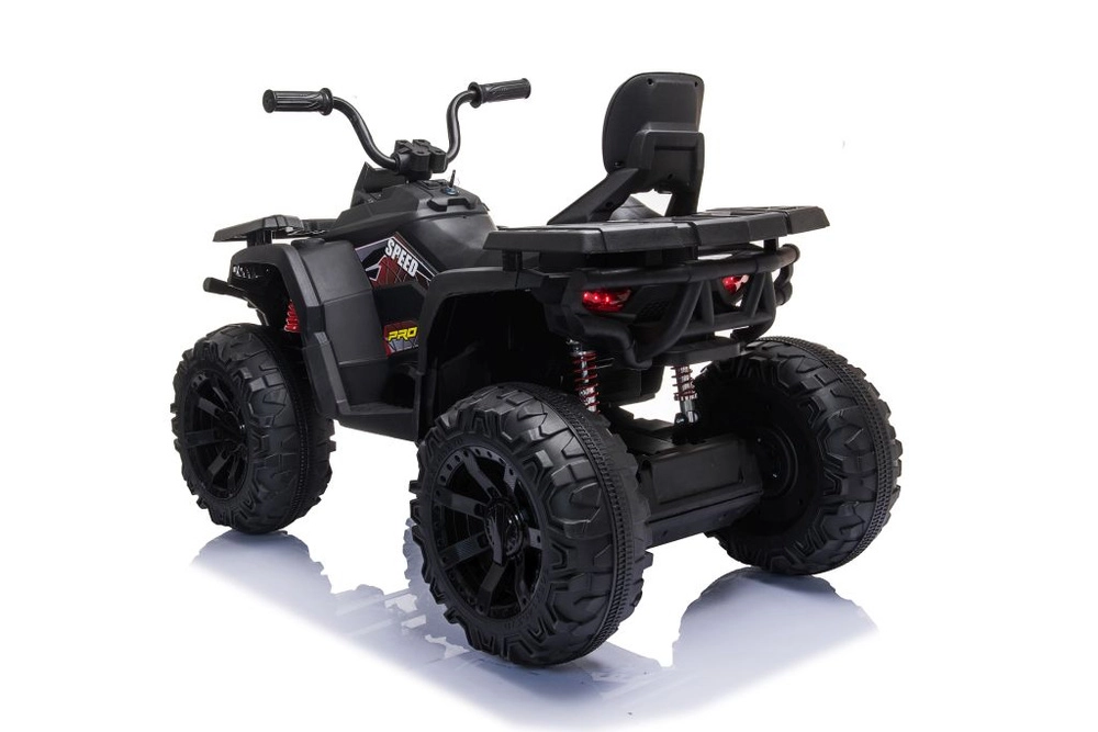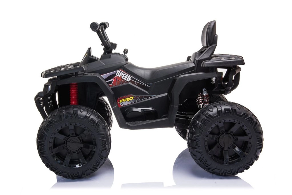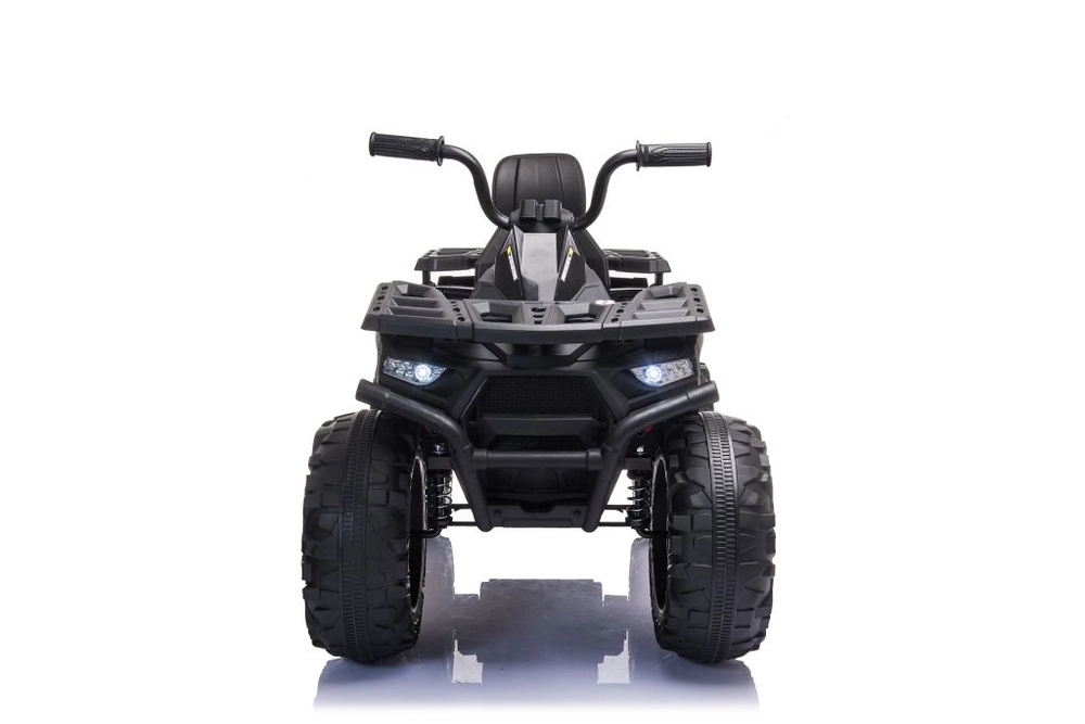 Robustan dječji električni četverokotač u elegantnoj crnoj boji nudi široke terenske gume, stabilno četverokotačno podvozje i svjetleće LED farove za realističnu vožnju. Idealan za male avanturiste – udobno sjedalo s naslonom, sigurno upravljanje i moćan terenski izgled oduševit će svako dijete.