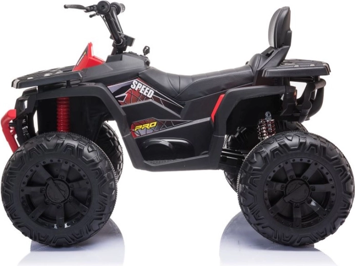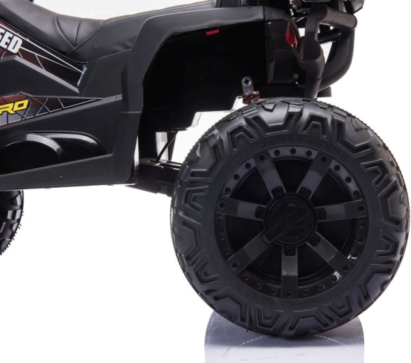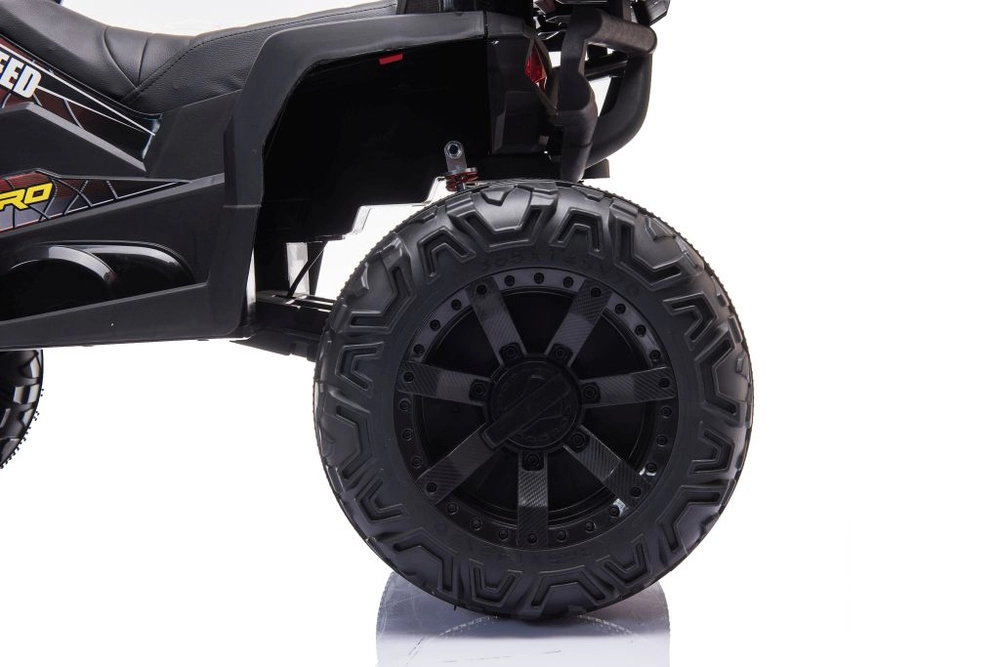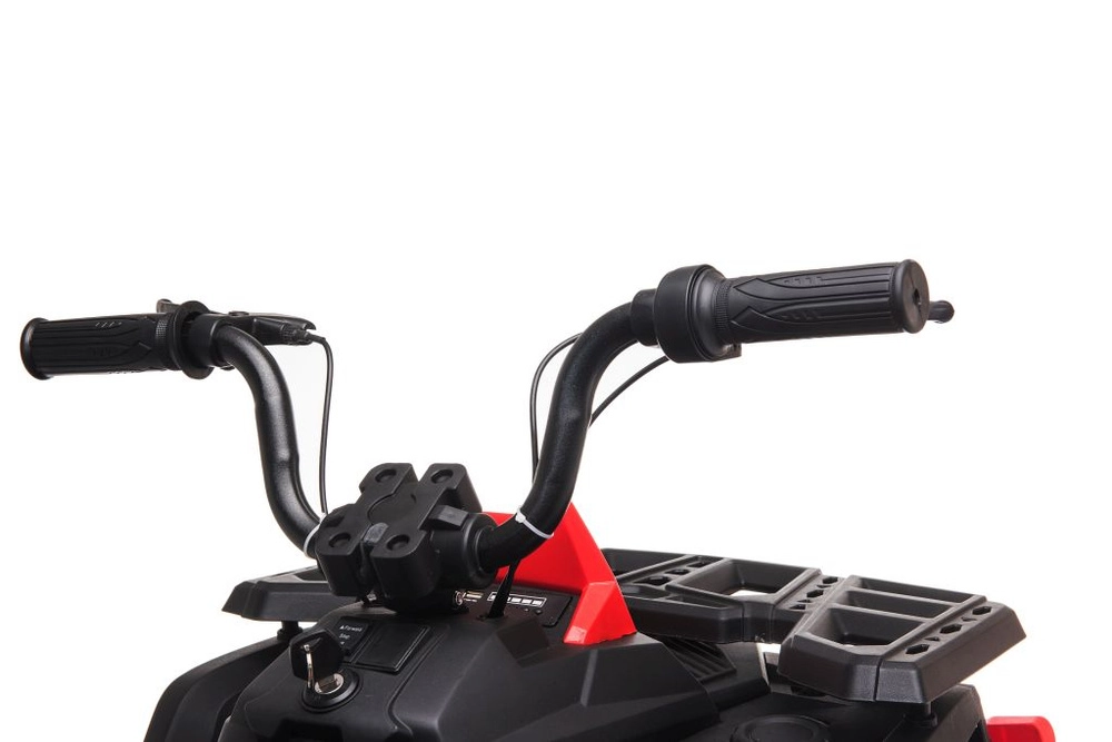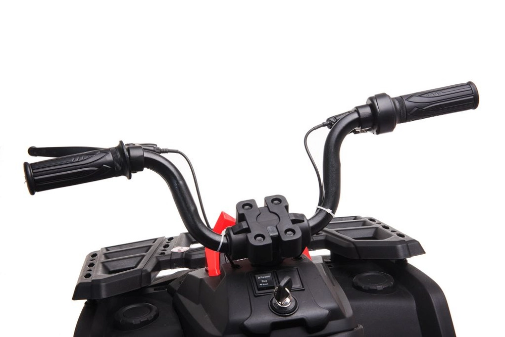 Robustan dječji električni četverokotačni motor sa širokim terenskim gumama, stabilnom konstrukcijom i realističnim LED svjetlima donosi puno zabave u dvorištu i na tvrdoj podlozi. Jednostavno upravljanje upravljačem, udobno sjedalo s naslonom za leđa i prekidač naprijed/stop/nazad čine vožnju sigurnim i zabavnim doživljajem.