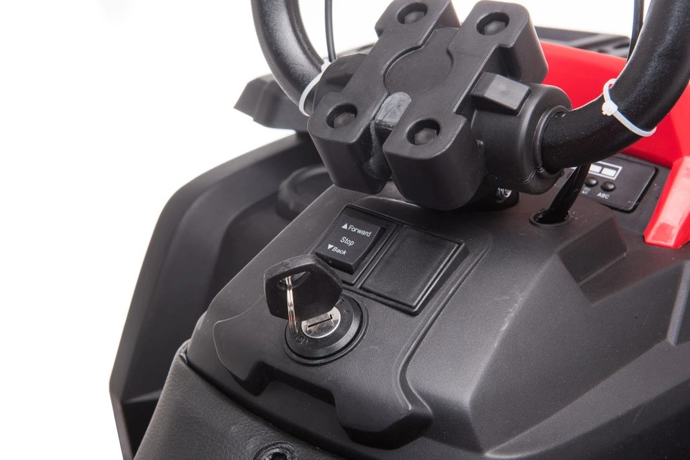 Upravljač s protukliznim gripovima, ključ za paljenje i prekidač smjera vožnje (naprijed/stop/nazad) omogućuju djeci sigurno kretanje i zaustavljanje.
