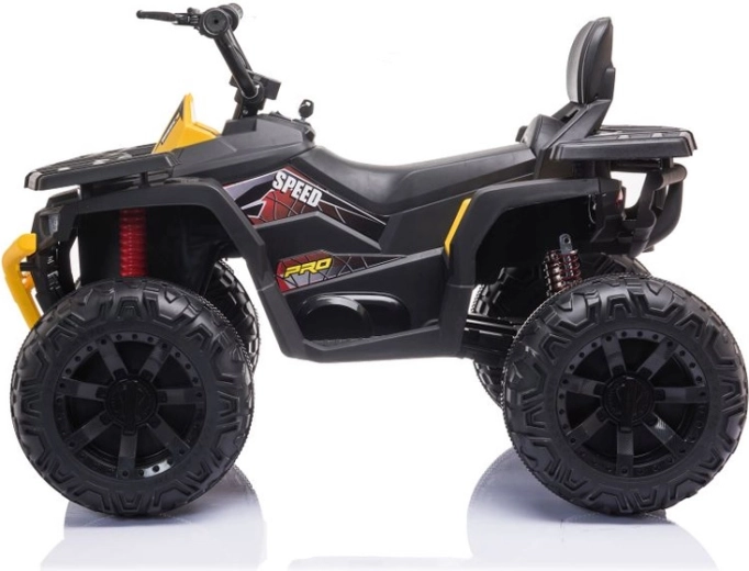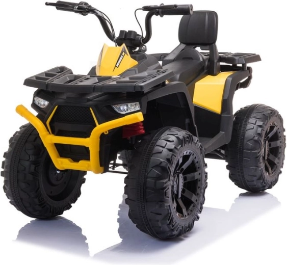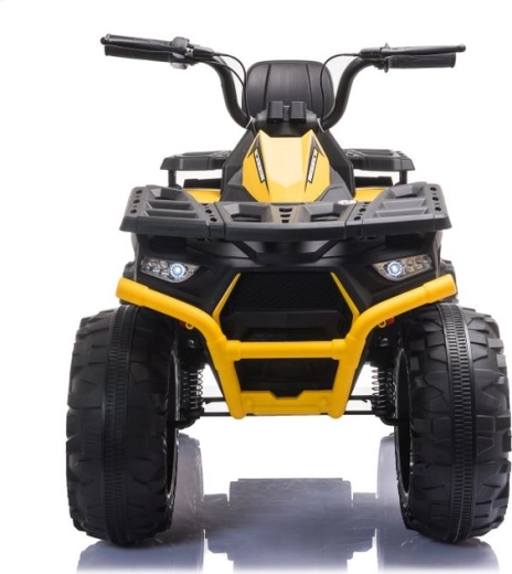 Stilski dječji električni četverokotač u žutoj boji nudi robustan off-road izgled, široke terenske gume za stabilnost i udobno sjedalo s naslonom. Idealan za male avanturiste – jednostavno upravljanje volanom, sigurne oslonce za noge i realistične LED elemente za još veću zabavu.