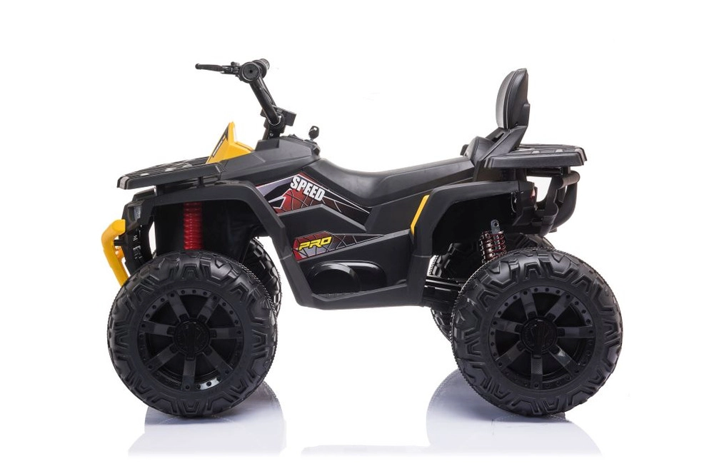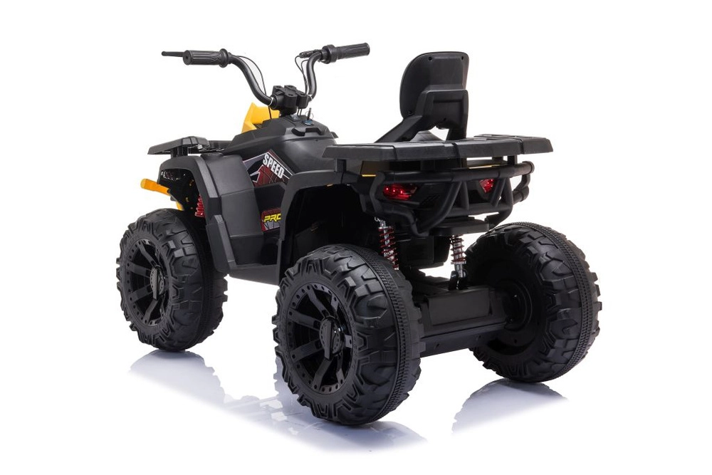 Ovaj električni dječji četverokotač spaja atraktivan ATV izgled s praktičnom funkcionalnošću. Zahvaljujući velikim profiliranim gumama savladava neravne površine u vrtu i na pločniku, dok širok volan i prednji odbojnik osiguravaju sigurno i pouzdano upravljanje. Podstavljeno sjedalo s naslonom pruža udobnost i pri duljoj vožnji.