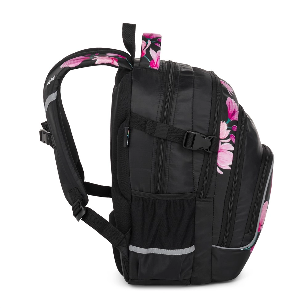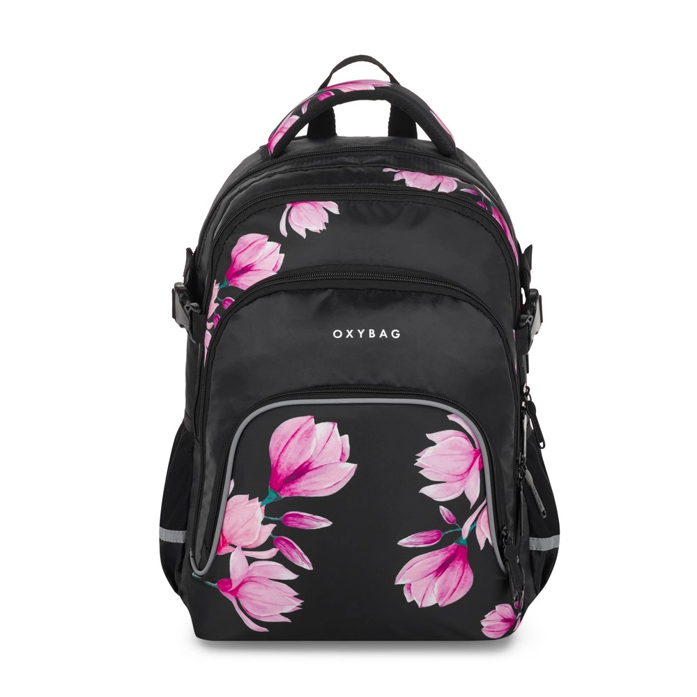 OXYBAG Scooler Magnolia pouzdan je suputnik za školu i slobodno vrijeme. Tri prostrane komore primaju udžbenike, bilježnice i užinu, prednji džepovi s organizerom održavaju red u sitnicama, a unutarnji pretinac štiti vaše prijenosno računalo. Bočni džep idealan je za bocu s pićem, dok praktični držač za ključeve ili čip štedi vrijeme pri svakodnevnom traženju.