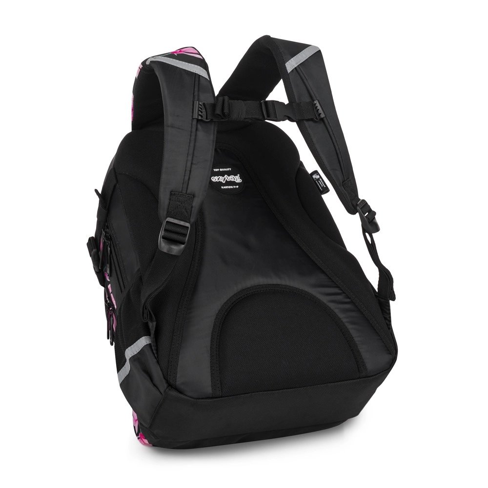 Za udobno nošenje ruksak je opremljen anatomski oblikovanim prozračnim leđima, podesivim naramenicama i prsnim remenom, zahvaljujući čemu odlično pristaje i pri duljem putu. Učvršćeno vodonepropusno dno štiti sadržaj od vlage i prljavštine, a reflektirajući elementi povećavaju vidljivost djece na putu u školu i natrag.