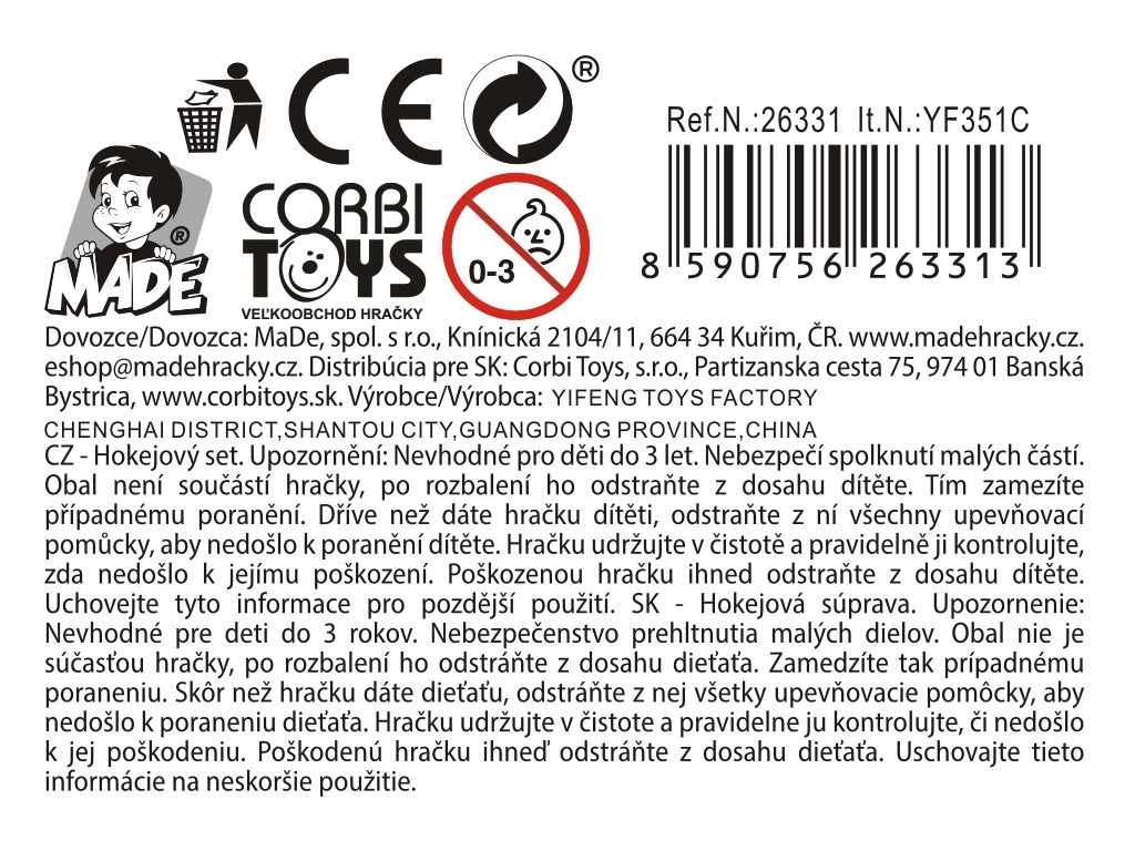 Set uključuje narančastu lopticu i crni pak, pa djeca mogu isprobati igru na raznim podlogama i razvijati različite vještine.