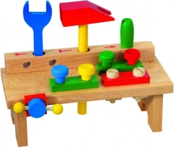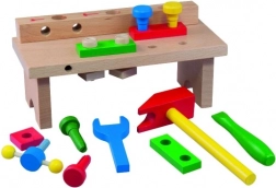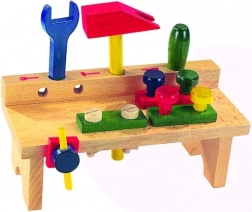 Drveni radni stol s alatom Detoa odlična je osnova za male majstore. Djeca uče osnovno rukovanje alatima, vježbaju koordinaciju ruku i očiju te razvijaju logičko razmišljanje pri zavrtanju i sastavljanju.