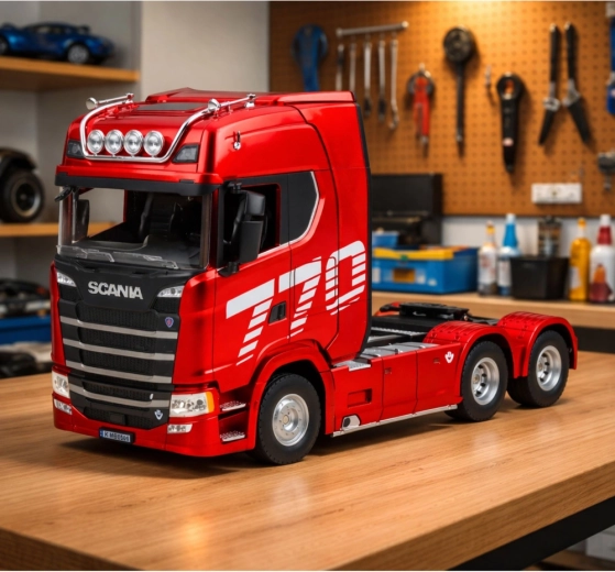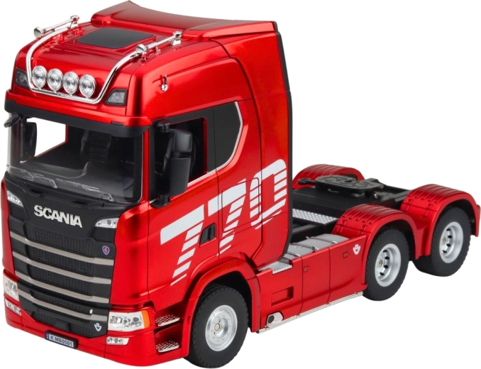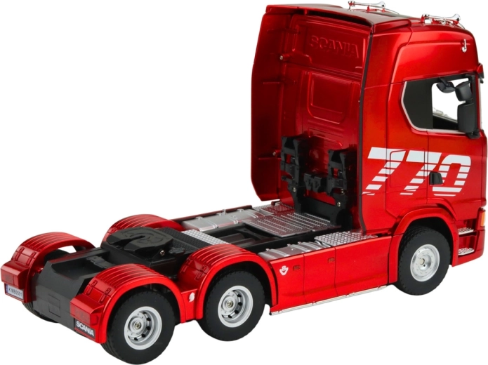 Vjerno izrađena kabina SCANIA, maska, svjetla, retrovizori i detalji podvozja djeluju kao pravi tegljač. Odlično za kolekcionare i igru.