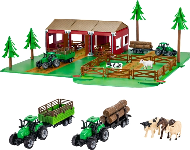 Dva traktora i dvije prikolice omogućuju prijevoz drva i drugog tereta te realistično oponašanje poslova na farmi. Detaljna izrada zgrada, ograda i kabina traktora od kvalitetne plastike osigurava izdržljivost i privlačan izgled.