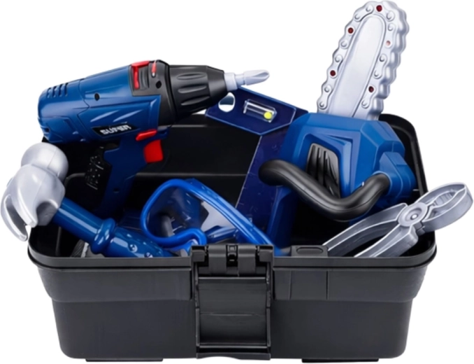 Praktičan dječji set alata u prijenosnom kovčegu nudi do 30 dijelova za realističnu igru majstora. U njemu ćete naći akumulatorski odvijač, čekić, pilicu, ključeve, odvijač, kliješta, montažne elemente te zaštitne naočale i masku. Lagana i izdržljiva plastika osigurava sigurnu i ugodnu uporabu, a kovčeg s ručkom olakšava pohranu i prijenos.