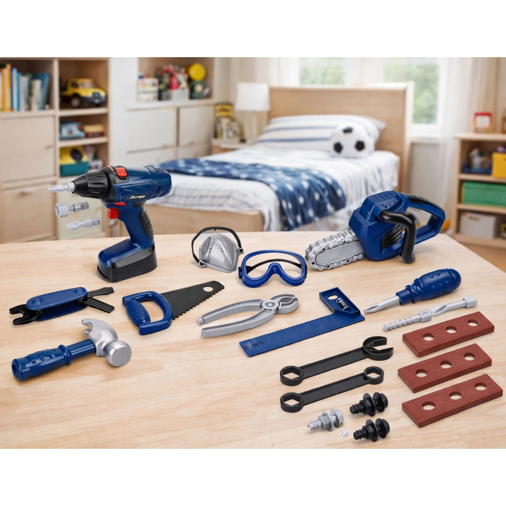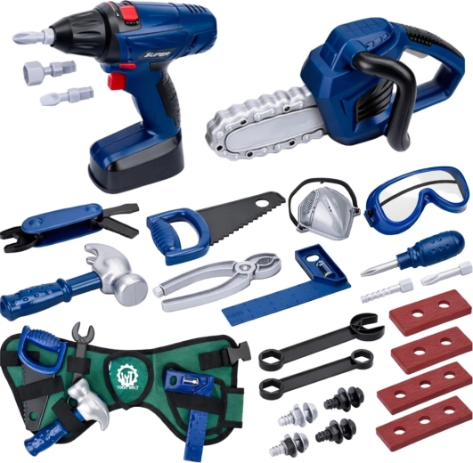 Akumulatorski odvijač, pila, čekić, ključevi i odvijač izgledaju kao pravi – potiču maštu i učenje kroz igru.