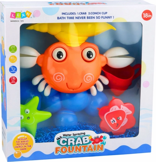 Šareni rak s osmijehom i fontanom pretvara kadu u morski svijet. Dovoljno je uliti vodu u gornju školjku i kotačići će se zavrtjeti, elementi će se pokrenuti, a iz rakovih usta izbit će sitna fontana. Zahvaljujući vakuumskim čašicama, igračku lako pričvrstite na glatke pločice ili kadu, gdje čvrsto stoji tijekom cijele igre.