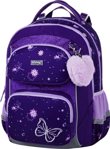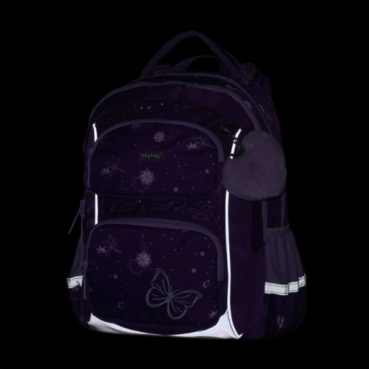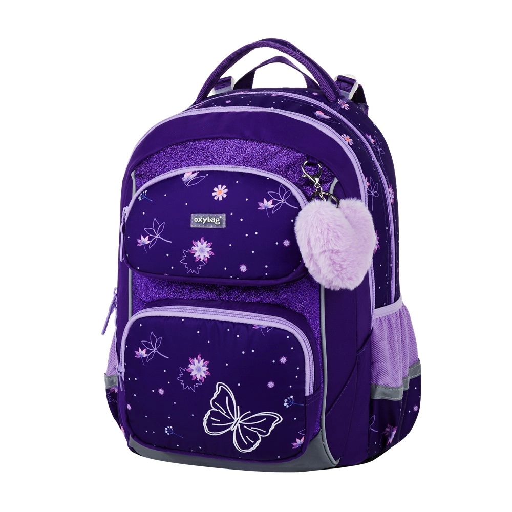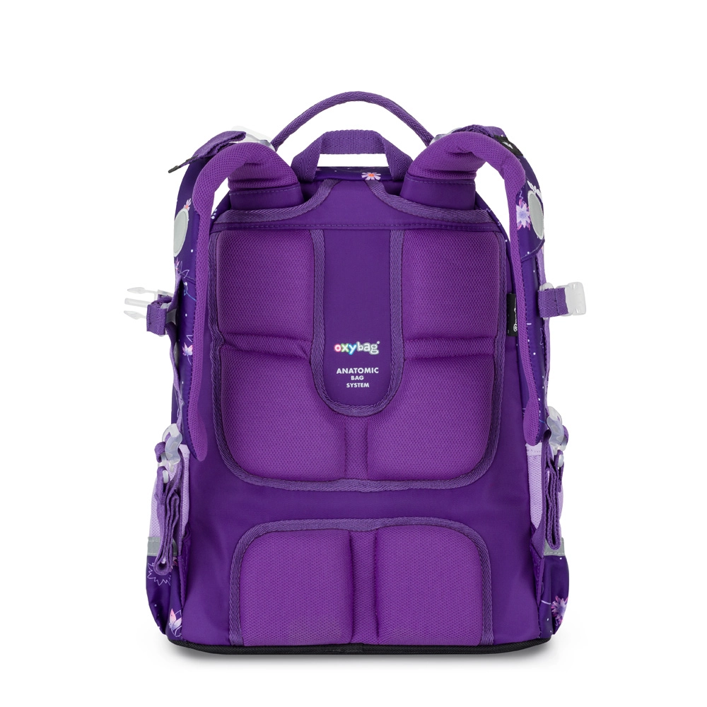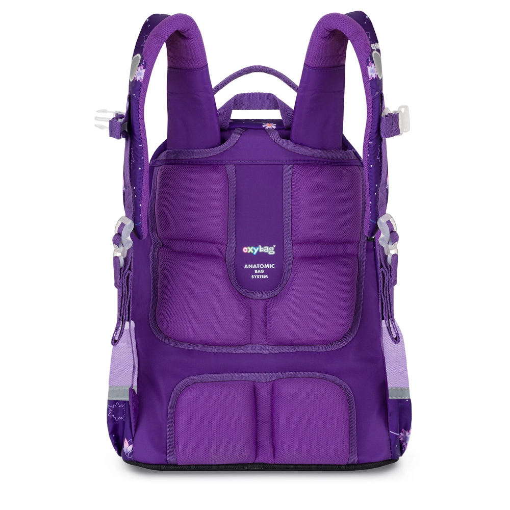 Povoljan trodijelni školski set OXY Jumper Flowers kombinira ergonomski ruksak s jednokatnom pernicom i vrećicom za tjelesni u usklađenom dizajnu. Ruksak nudi anatomski oblikovana leđa, podstavljene i podesive naramenice s prsnom trakom, dvije prostrane komore, prednji džep za užinu, bočne mrežaste džepove za bocu i ojačano vodonepropusno dno. Zahvaljujući reflektirajućim elementima vidljivost djece na putu do škole je veća.