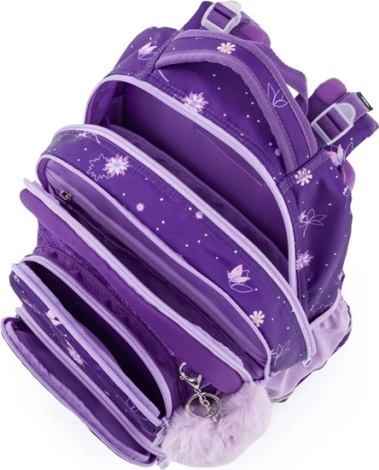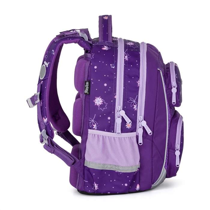 Školski set OXY Jumper Flowers osmišljen je za udobno svakodnevno nošenje i preglednu organizaciju školskih potrepština. Dvije prostrane komore stanu udžbenici i bilježnice, prednji džep idealan je za kutiju za užinu, a bočni mrežasti džepovi drže bocu uvijek pri ruci. Anatomski oblikovan leđni panel i opružene ramene naramenice s prsnom trakom raspoređuju opterećenje i povećavaju udobnost.