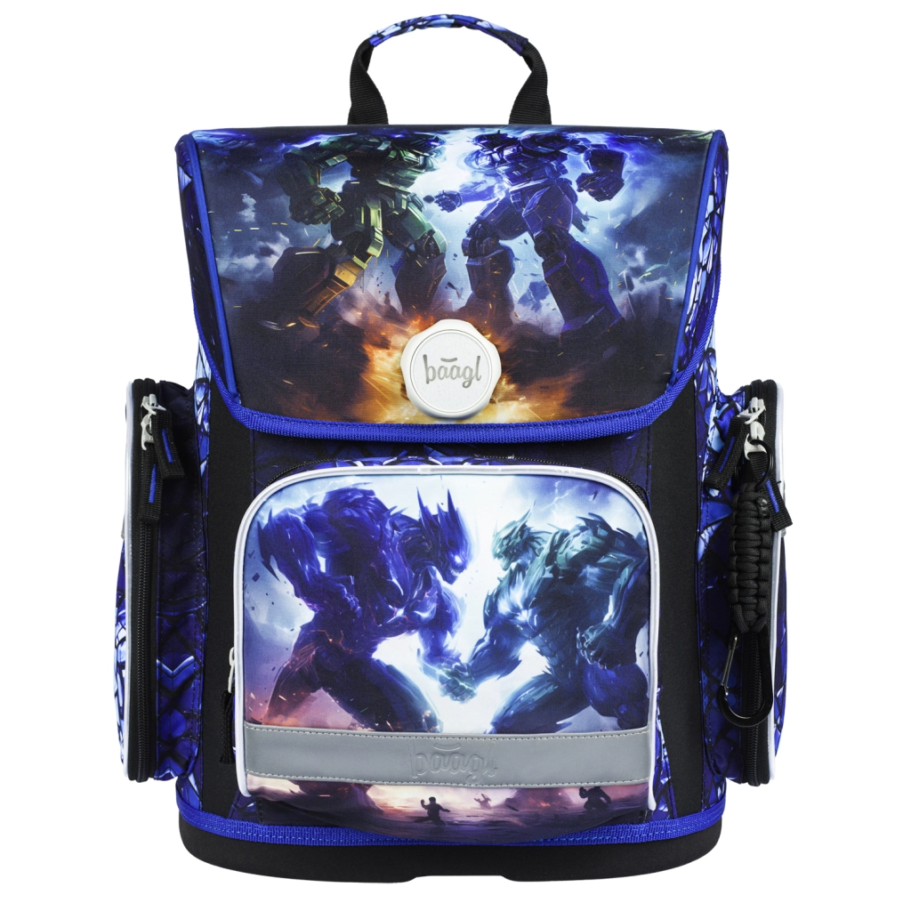 BAAGL školski set Roboti donosi djeci sve što trebaju za školu i aktivnosti – u ujednačenom dizajnu s motivom robotske bitke. Glavna zvijezda je čvrsta, lagana i ergonomska aktovka s kliznim sustavom ERGO ADJUSTABLE SYSTEM, koja raste s djetetom i pomaže pravilnoj raspodjeli tereta. Magnetsko zatvaranje Fidlock omogućuje munjevito otvaranje i automatsko zatvaranje.