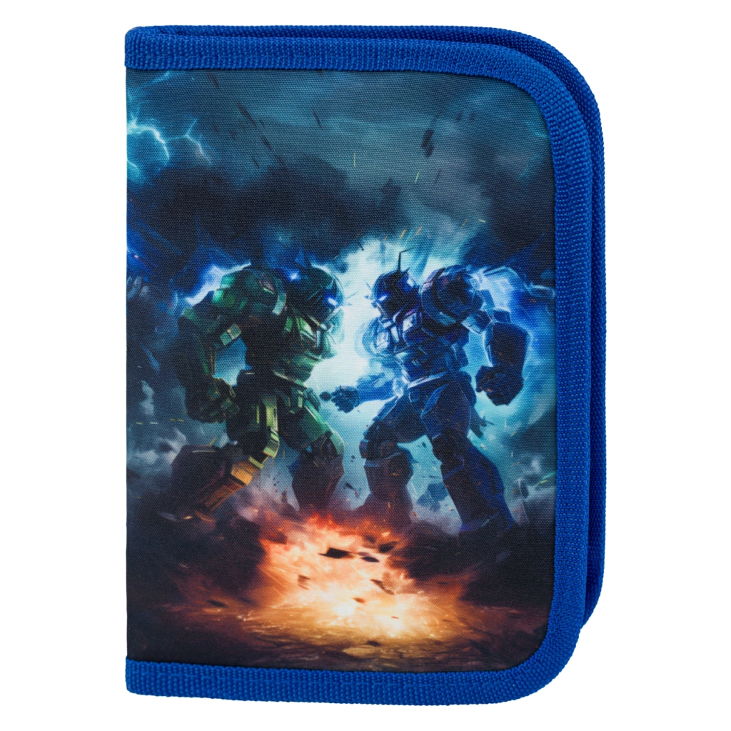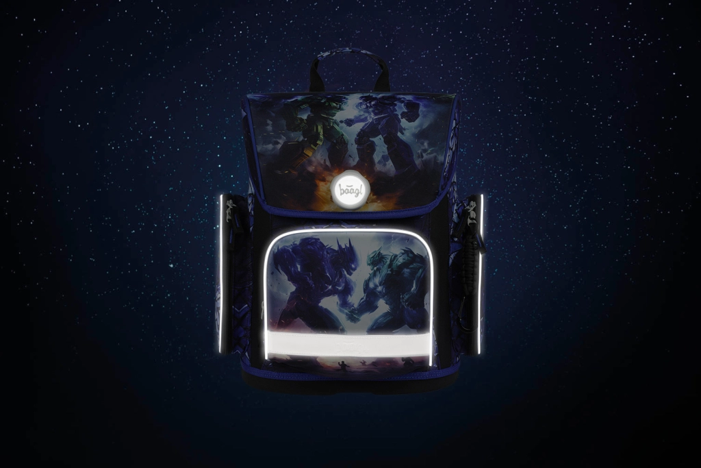 Kompletna školska oprema za male ljubitelje robota u praktičnom setu 5 u 1. Ergonomska aktovka s kliznim sustavom, prostrana pernica, sportska vrećica, zaštitna pregača i novčanik za oko vrata. Zahvaljujući maloj težini, promišljenoj organizaciji i izraženim reflektirajućim elementima, set je idealan za niže razrede osnovne škole. Ergo leđni sustav, magnetno zatvaranje Fidlock, vodootporni materijali i sigurnosni reflektori osiguravaju udobnost i sigurnost svakog školskog dana.