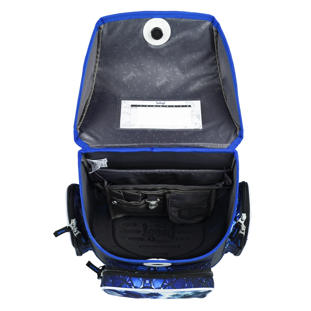 Praktična unutarnja organizacija s organizatorom, prozirnim džepom za raspored, izoliranim prednjim džepom i dvama bočnim džepovima održava red. Set nadopunjuje jednopodna pernica (bez punjenja) s YKK patentnim zatvaračem, izdržljiva vrećica s vezicama za nošenje na leđima i karabinom za pričvršćivanje na aktovku, periva dječja pregača s dva džepa te novčanik za oko vrata s imenikom i sigurnosnom kopčom na uzici.
