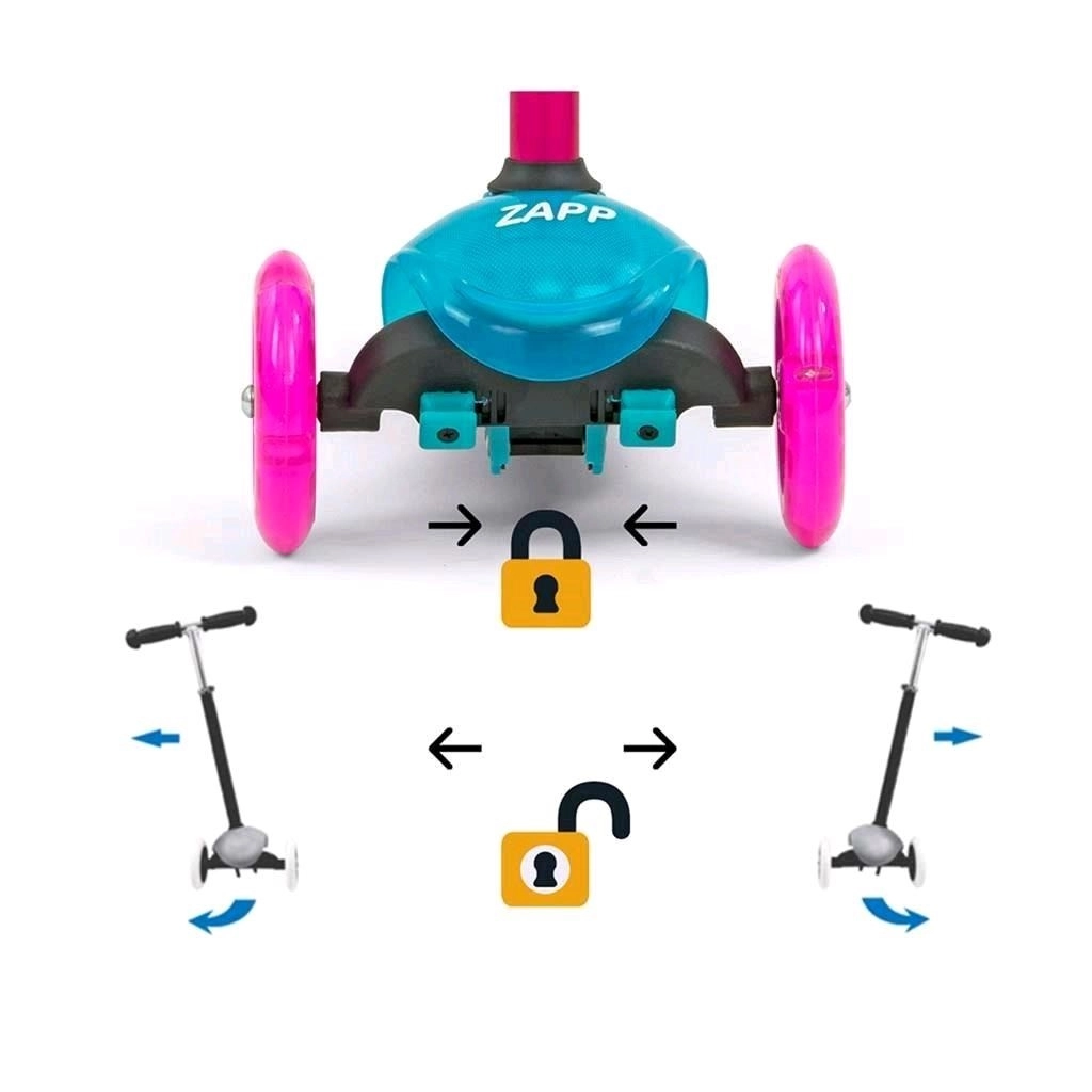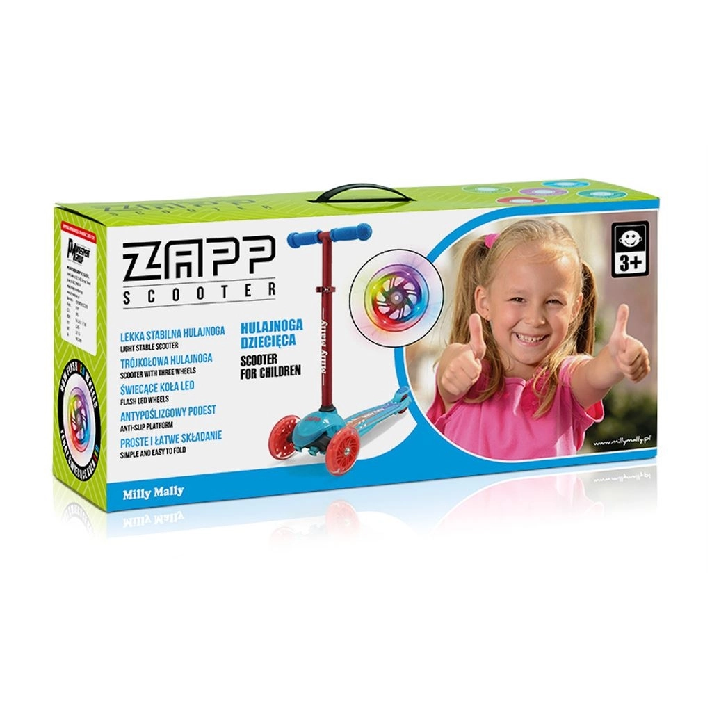 Lagan i izdržljiv dječji romobil MILLY MALLY Zapp s tri kotača za visoku stabilnost, svjetlećim prednjim kotačima i podesivim upravljačem (61/66 cm) savršen je za male vozače od 3 godine. Zahvaljujući lean-to-steer upravljanju (skretanje prijenosom težine), stražnjoj nožnoj kočnici s blatobranom i gumenim kotačima s ležajevima nudi sigurnu i zabavnu vožnju u kući i na otvorenom.