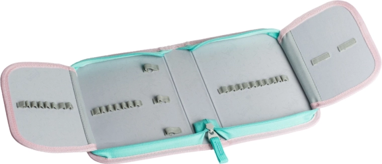 Preklopno otvaranje omogućuje lako vađenje pribora iz klupe, unutarnji organizator s gumenom trakom i prozirni džep za raspored drže sve na svome mjestu.