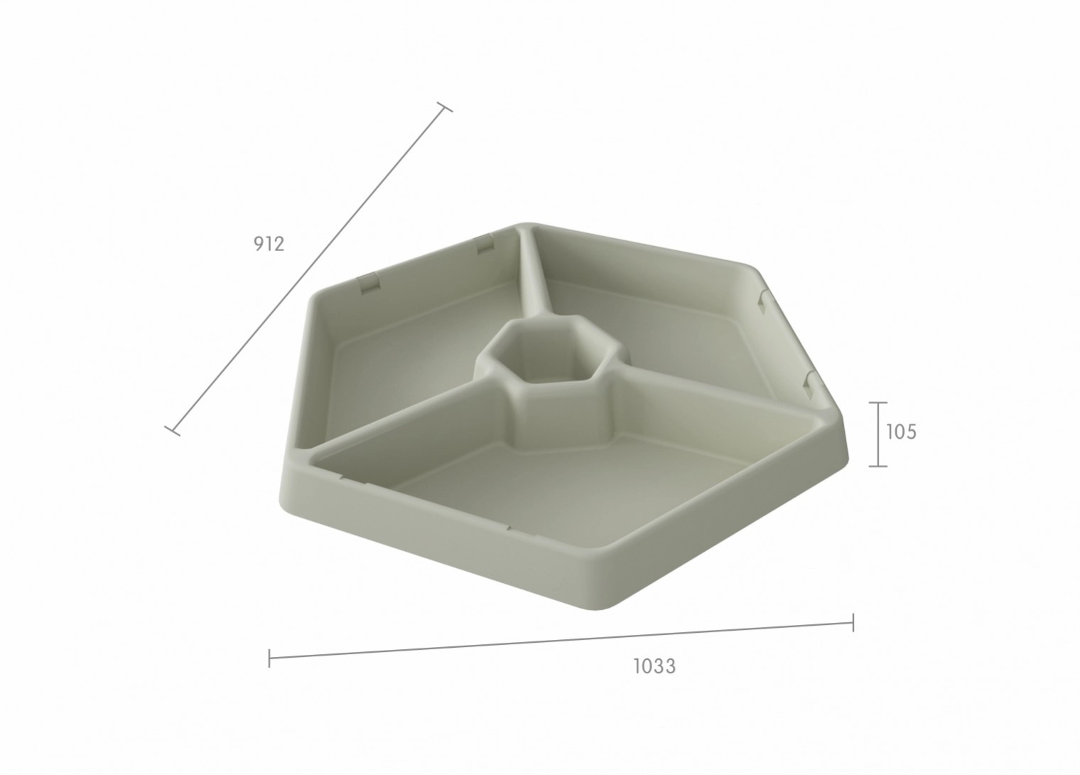 Otkrijte svijet znanosti kroz igru. Šesterokutni pladanj podijeljen je na 3 odvojene komore, tako da djeca mogu uspoređivati teksture, razvrstavati smjese i provoditi jednostavne „pokuse”. Zahvaljujući velikoj radnoj površini djeca se mogu slobodno kretati oko stola i istraživati materijale iz različitih kutova – i s povećalom. Površina u svijetlosivoj mat boji poboljšava kontrast za promatranje prirodnina i sitnih predmeta.