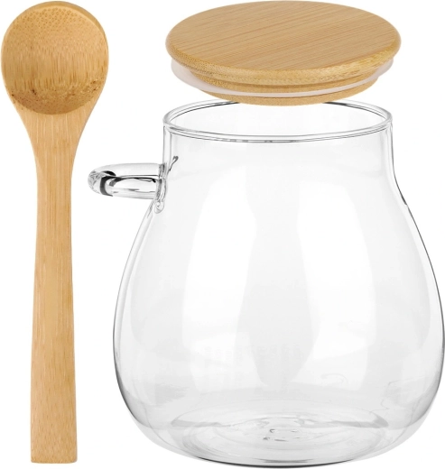 - Praktično posluživanje: bambuska žličica s elegantnim držačem na staklu.