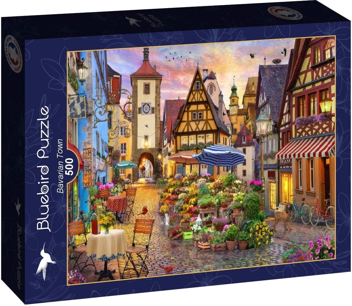 Otkrijte čaroliju povijesnih uličica s puzzleom BLUEBIRD – Bavarski grad od 500 dijelova. Uživajte u prekrasnom motivu, ugodnoj težini i opuštajućem slaganju za male i veće ljubitelje slagalica.