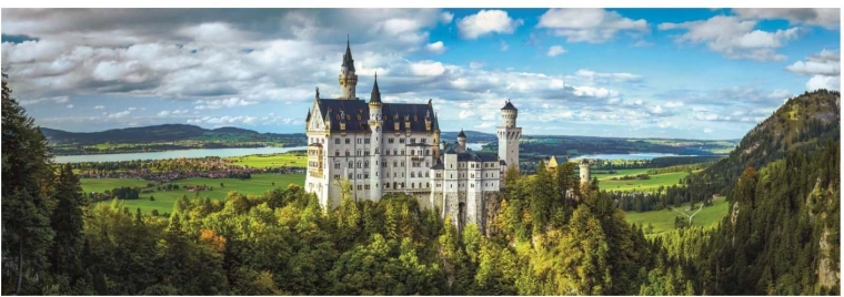 Uživajte u opuštanju uz slaganje panoramskih puzzli s kultnim motivom dvorca Neuschwanstein. Set brenda CLEMENTONI nudi 1000 kvalitetnih dijelova, precizne izreze i fini detalj slike. Nakon slaganja nastaje dojmljiva slika dimenzija cca 98 × 33 cm, idealna za uokvirivanje.