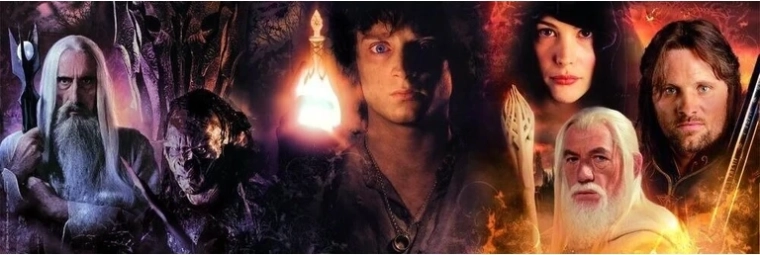 - Panoramski format oko 98 × 33 cm lijepo prikazuje Junake Međuzemlja.