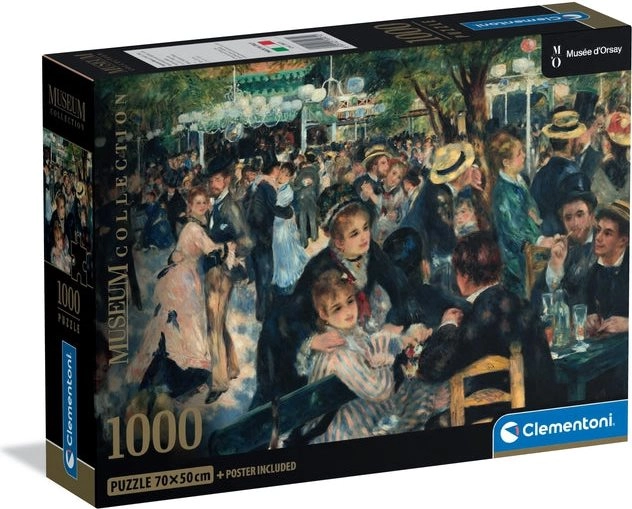 Uživajte u opuštanju uz kvalitetne CLEMENTONI puzzle iz kolekcije Museum Collection. Motiv slavne Renoireve slike „Bal u Moulin de la Galette“ očekuje vas u izvedbi od 1000 dijelova, a nakon slaganja stvara sliku dimenzija 70 × 50 cm. Sjajan izbor za ljubitelje umjetnosti i zahtjevnije slagalice koji traže precizan tisak, vjerne boje i kvalitetnu izradu.
