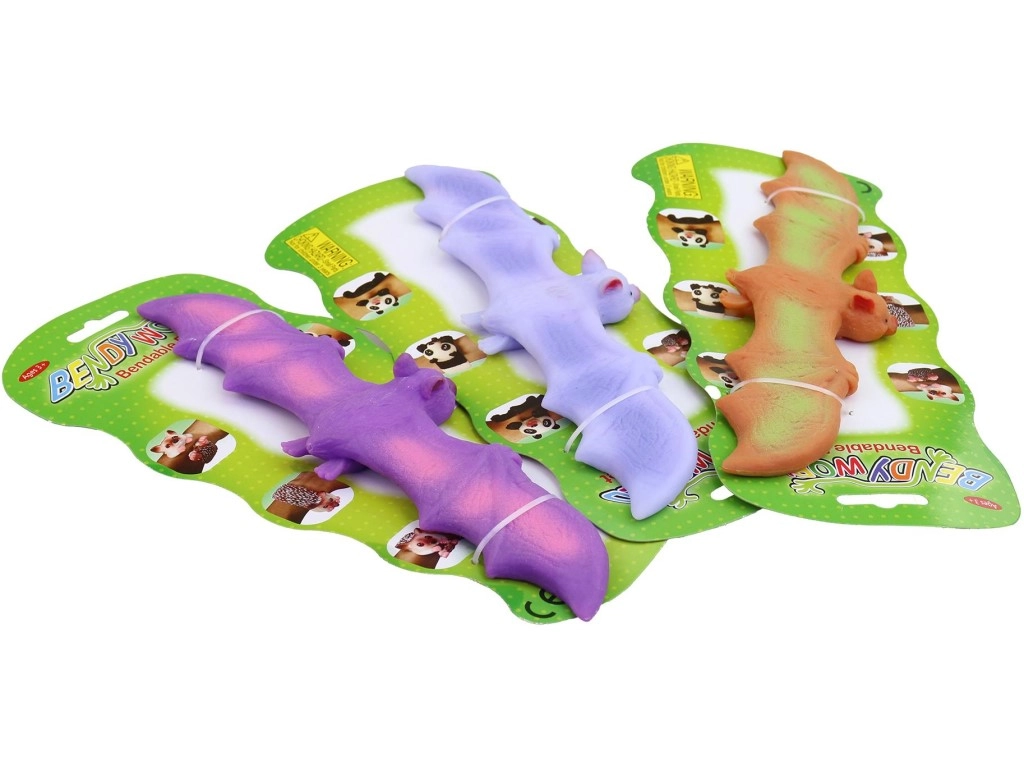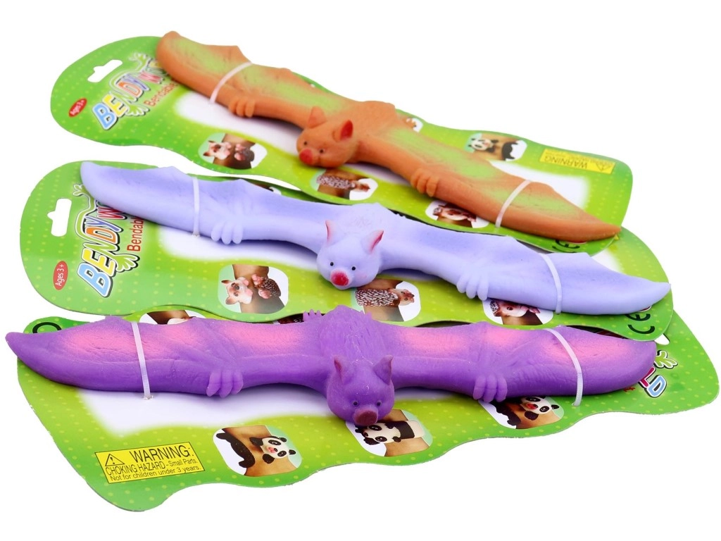 Zabavna i sigurna igračka za djecu od 3 godine: fleksibilni šišmiš od meke gume duljine oko 25 cm. Odlično se razvlači, stišće i savija, pomaže smanjiti napetost i zaokupiti ruke. Dostupan u živopisnim bojama i pakiran na kartici za jednostavno skladištenje i darivanje.
