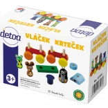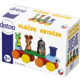 Šarmantni drveni vlakić iz licencirane serije KRTIĆ od češkog proizvođača Detoa razveselit će djecu i roditelje. Slobodno slaganje i mijenjanje poretka figurica potiču kreativnost, a lokomotiva ima dva izraza lica – veseli i začuđeni. Igračka je izrađena od kvalitetnog europskog drva, zdravstveno je ispravna i pakirana u čvrstu kartonsku kutiju.