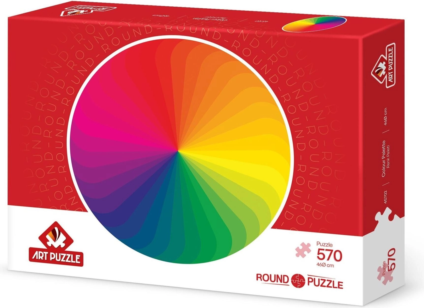 Ova šarena slagalica u okruglom formatu nudi svjež dizajn i glatke prijelaze boja koji će razveseliti i oko i um. S 570 precizno izrezanih dijelova, puzzle su savršen izbor za mirne trenutke odmora ili zajedničko slaganje s obitelji.