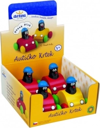 Zabavna igračka autić s likom Krtka koji pri pritisku ispušta zvuk pištanja. Idealno za djecu od 1 godine, izrađeno od sigurnih materijala.