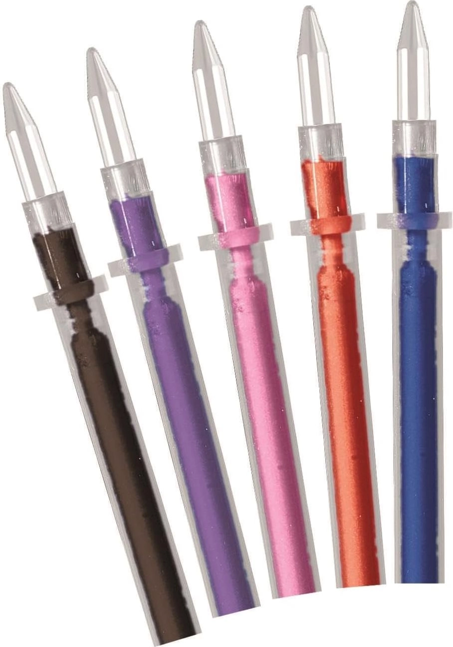Prozirna tijela kemijskih olovaka mogu se napuniti šljokicama, perlicama i ukrasima. Svaka je olovka jedinstvena i spremna za pisanje s tintnom uloškom.
