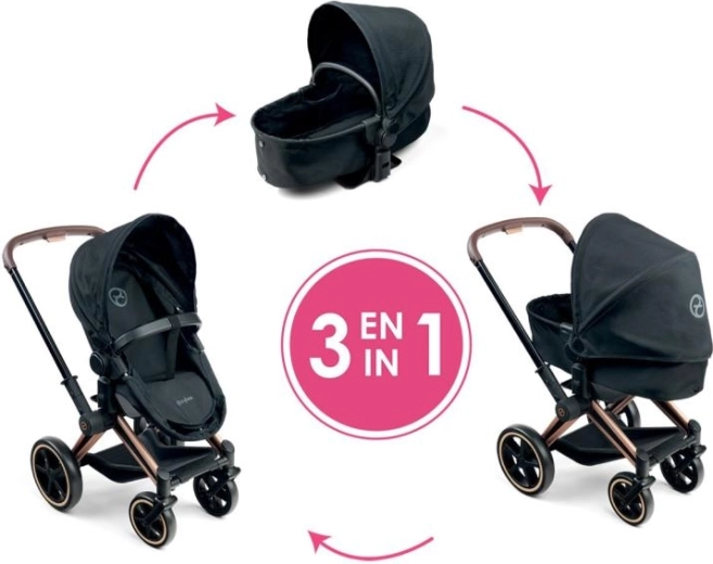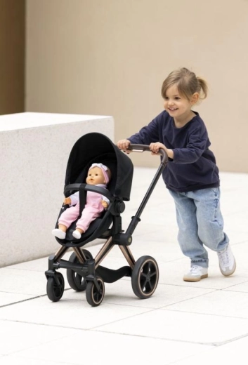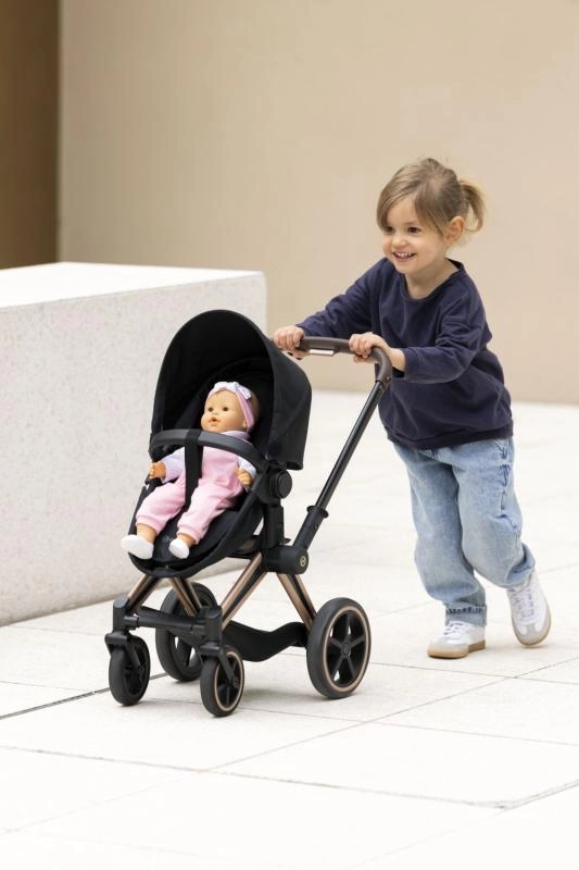 Kolica za lutke CYBEX Black 3 u 1 razvijena su u suradnji s markom CYBEX i vjerno se temelje na kultnom modelu PRIAM. Djeca tako mogu uživati u igri roditelja sa stilom i funkcionalnošću kao kod pravih kolica. Zahvaljujući promišljenoj konstrukciji služe kao duboka košara, sportska kolica i udoban prijenosni krevetić.