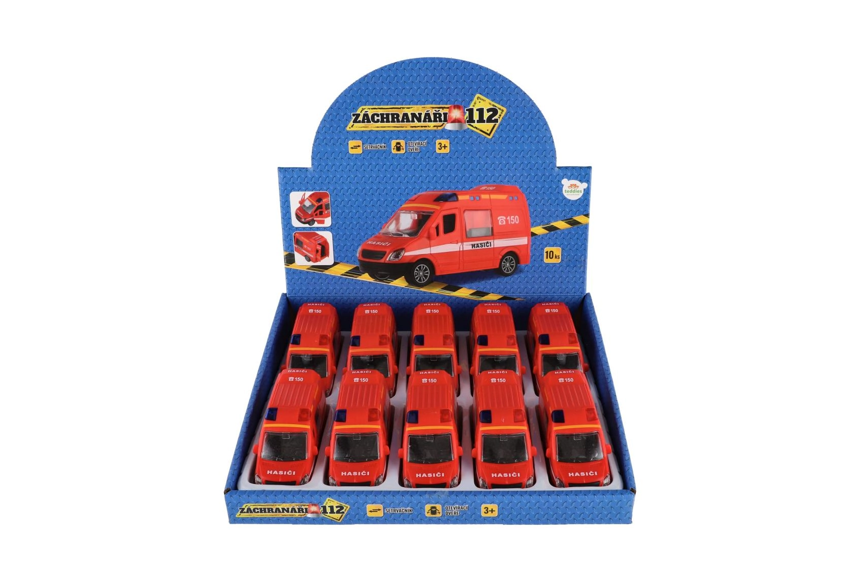 Mali plastični vatrogasni automobil duljine 12 cm s inercijskim pogonom razveselit će sve male spasioce. Dovoljno ga je povući unatrag i vozilo će se samo brzo pokrenuti naprijed. Realistična crvena izvedba s natpisom „Vatrogasci“ idealna je za igru u kući i na otvorenom, a praktično pakiranje od 10 komada u kutiji prikladno je i za veću zabavu braće, sestara ili prijatelja.