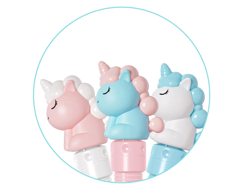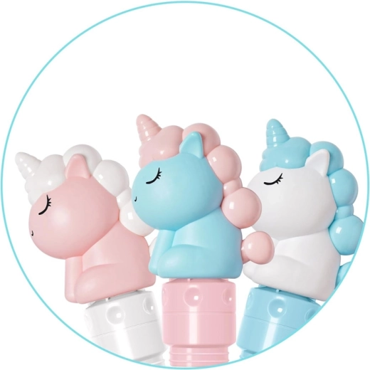 Lagana plastična konstrukcija, udoban hvat i razigrani motiv jednoroga potiču prirodno kretanje i koordinaciju. Pištolj je pogodan i za mlađu djecu – upravljanje je intuitivno, bez kompliciranog punjenja spremnika. Izgled i boje mogu varirati te se šalju nasumično.