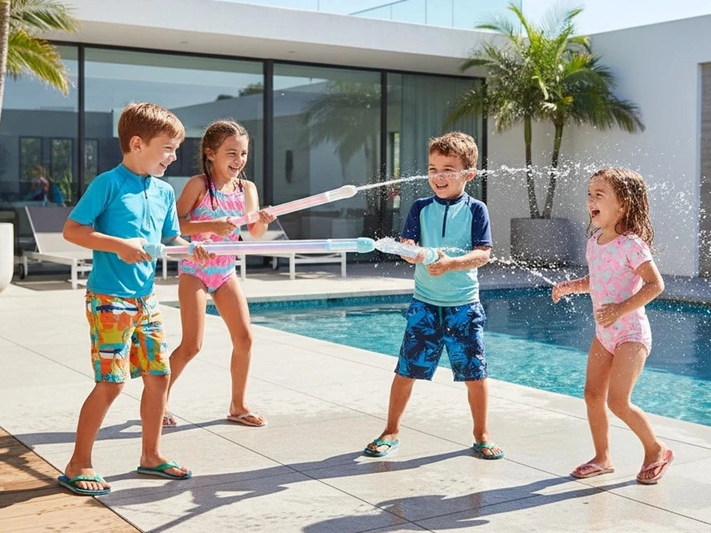 Mehanizam radi kao vodena štrcaljka: uronite vrh u vodu, povucite i pritisnite. Što je pokret energičniji, to je mlaz dulji i snažniji za maksimalnu zabavu.