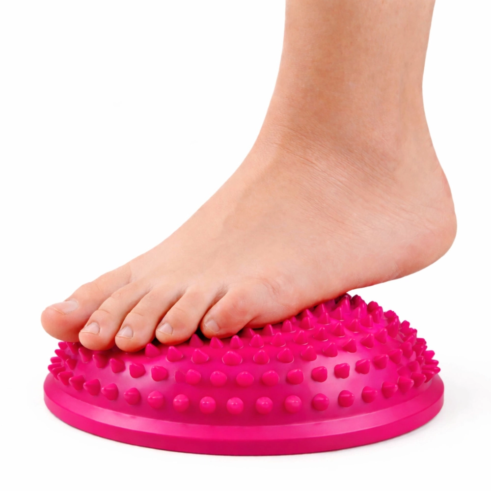Ova ružičasta polukugla promjera 16 cm idealna je za jačanje dubokog stabilizacijskog sustava, poboljšanje koordinacije i razvoj propriocepcije. Površina s gustim izbočinama pruža ugodnu stimulaciju stopala, koja pomaže u otpuštanju napetosti i podupire zdrav obrazac hoda.