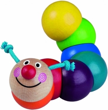 Ova simpatična gusjenica marke DETOA izrađena je od kvalitetnog drva i šarenih perlica nanizanih na elastičnoj gumici. Pri stiskanju i savijanju gusjenica se pomiče, što djecu zabavlja i pritom prirodno vježba njihov hvat i koordinaciju oko–ruka.