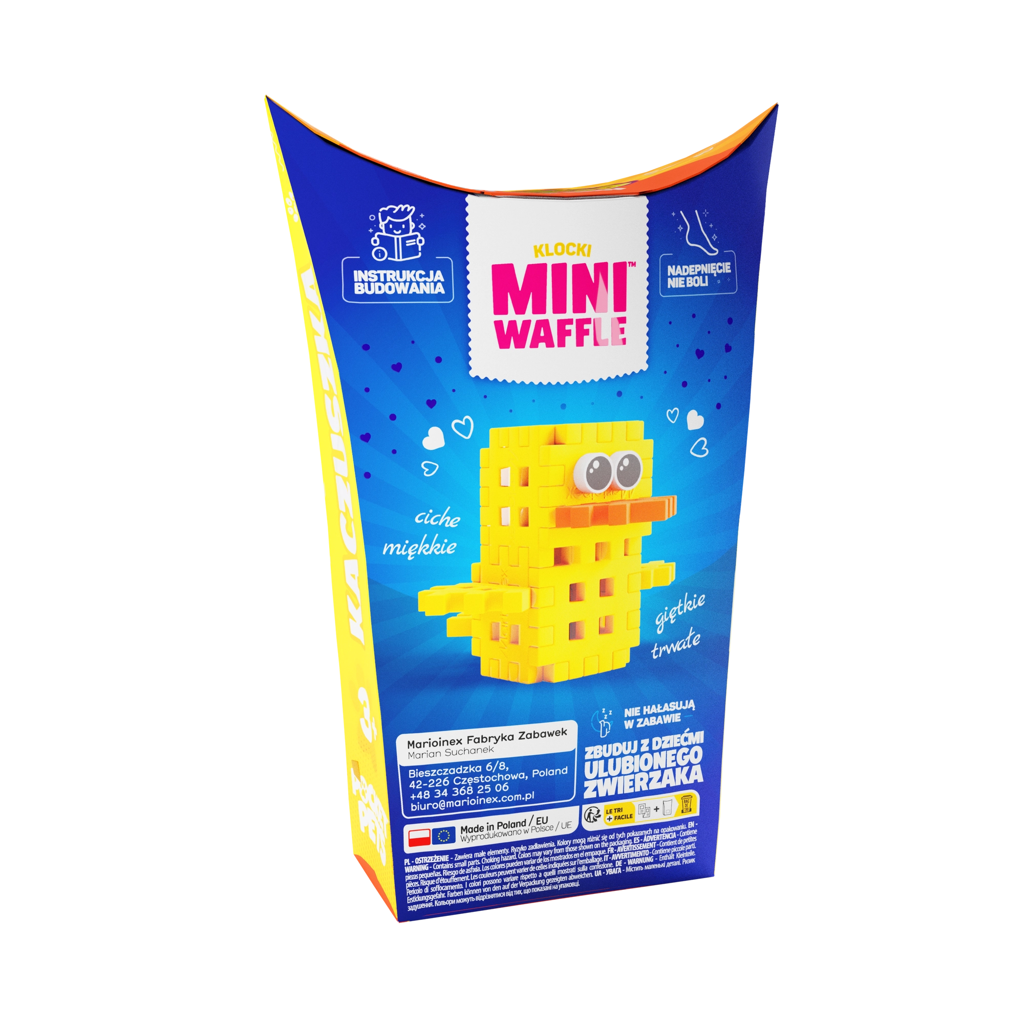 Konstruktorski set MARIOINEX Mini Waffle Pocket Pets – Pačić idealan je izbor za brzu i smislenju zabavu kod kuće i na putu. Djeca mogu slagati u 2D i 3D, stvarati vlastite priče i proširivati kolekciju životinjica iz serije Pocket Pets. Dijelovi su ugodno elastični, sigurni i dizajnirani za višekratno sastavljanje.