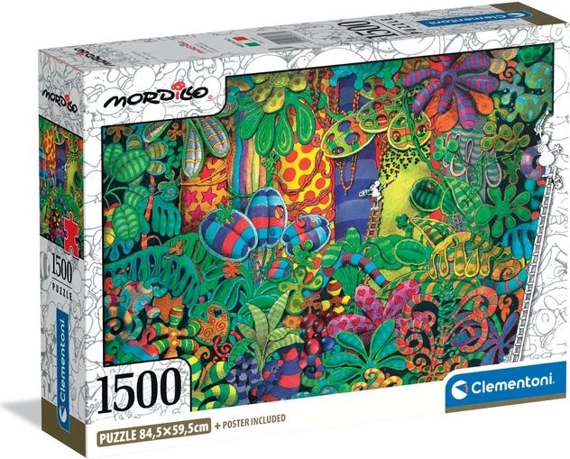 Uronite u svijet duhovitih ilustracija MORDILLO i otkrijte radost slaganja s puzzleima CLEMENTONI. Vrhunski tisak, precizni izrezi i čvrst karton osiguravaju savršeno uklapanje i dug vijek trajanja. Puzzle sa 1500 dijelova idealan su izbor za naprednije slagatelje koji traže izazov i opuštanje.