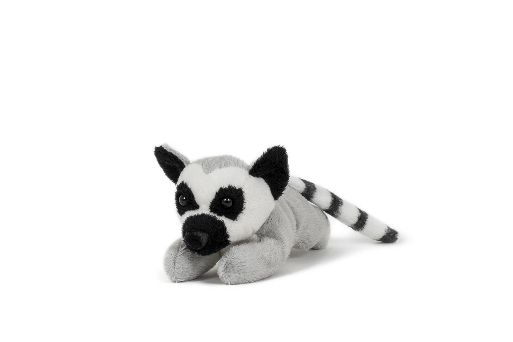 Preslatki plišani prstenasti lemur u ležećem položaju oduševljava svojim tipičnim crno‑bijelim krznom i dugim prugastim repom. Zahvaljujući realističnoj izradi, mekanom i nježnom materijalu te prijateljskom izrazu brzo postaje omiljeni pratitelj za maženje i igru kod kuće i na putu.