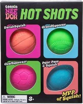 Antistresne loptice NeeDoh Hot Shots postale su popularne na društvenim mrežama i ubrajaju se među omiljene senzorne igračke za djecu od 3 godine naviše. Svaka loptica ima drugačiju teksturu, može se stiskati, rastezati i bacati, a materijal se uvijek vraća u prvotni oblik. Odlične su za rasterećenje, povećanje pažnje i umirenje tijekom dana.