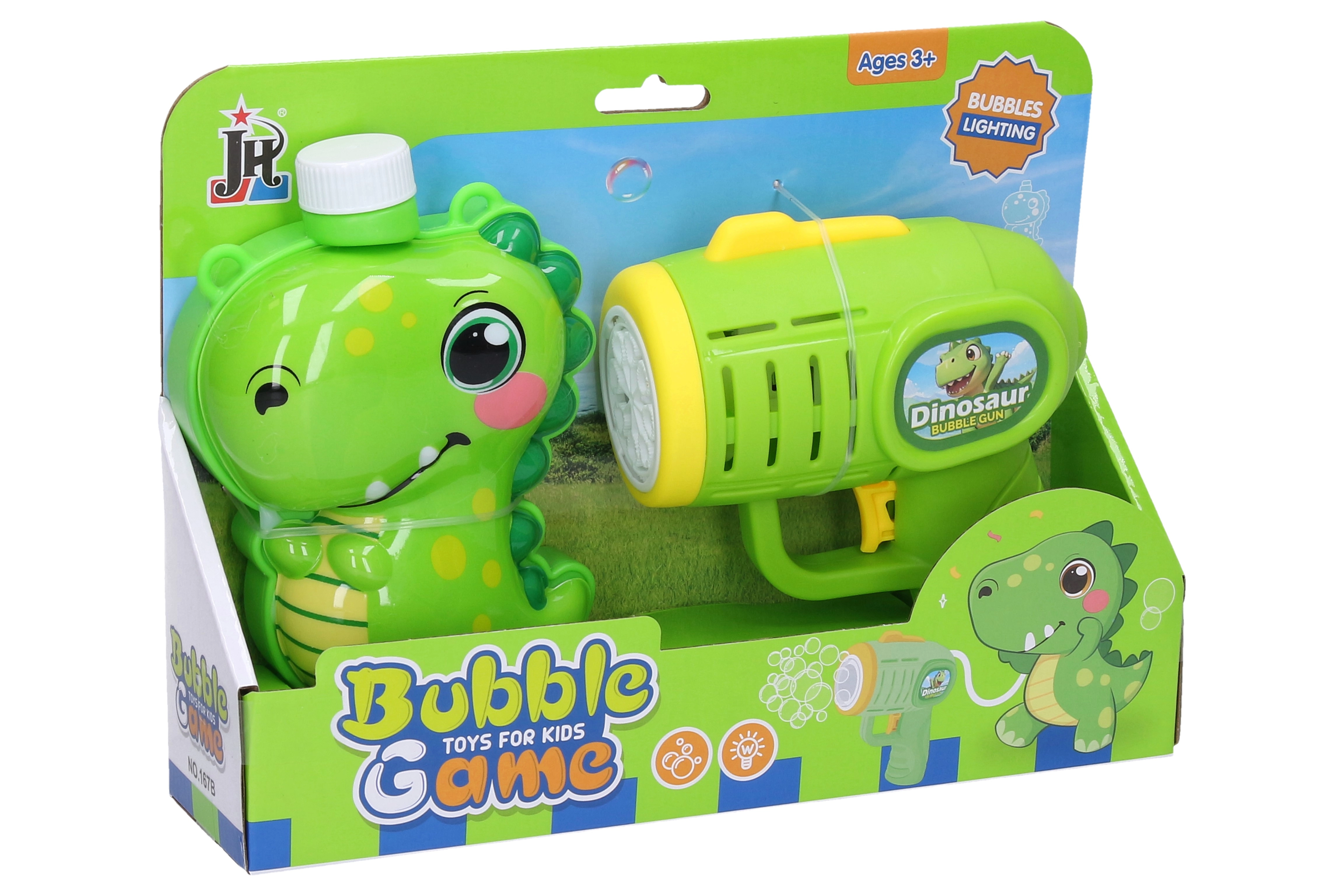 Zabavna puhalica mjehurića u obliku dinosaura s velikim vanjskim spremnikom od 280 ml stvara mnoštvo šarenih mjehurića bez stalnog dolijevanja. Jednostavno upravljanje, automatsko puhanje mjehurića i kompaktne dimenzije čine je izvrsnim izborom za djecu u vrtu, na igralištu i rođendanskim proslavama. Napajanje s 3× AA baterije (nisu uključene).