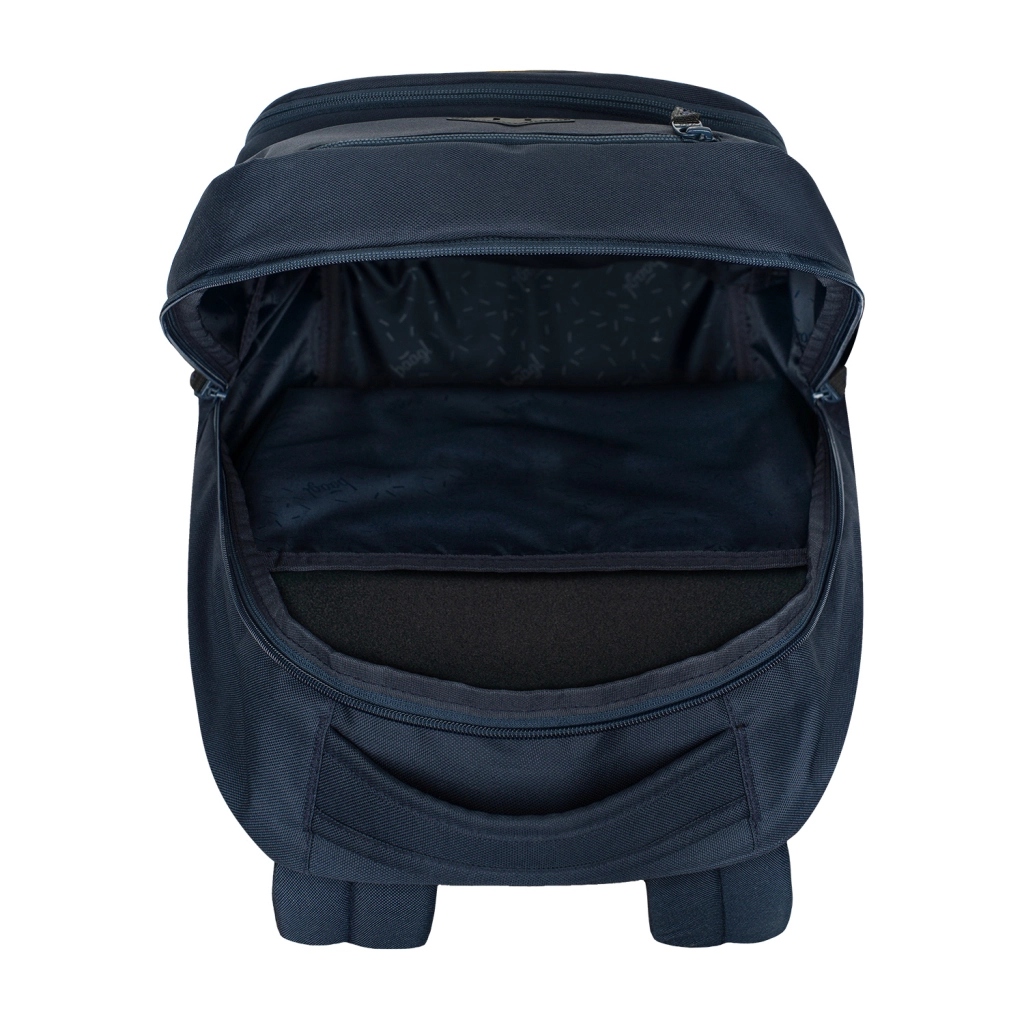 Unutarnja podjela oduševit će svakog školarca: tri zasebno zatvoriva pretinca, podstavljeni džep za 17" prijenosno računalo, odvojeni džep za naočale i integrirani organizator za sitnice. Praktični izolirani džep za užinu dulje čuva svježinu sadržaja, dok samonavijajući sustav za ključeve/čip osigurava brz i siguran pristup. Kvalitetni YKK patentni zatvarači i nosivost do 10 kg naglašavaju dug vijek trajanja. Certifikat Global Recycled Standard (GRS) potvrđuje ekološki prihvatljivu izradu.