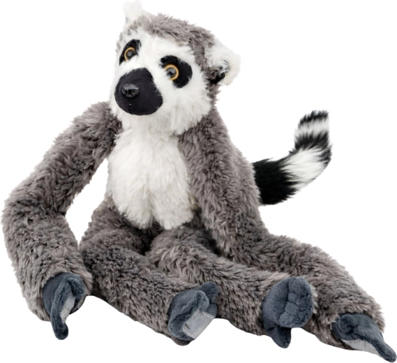 Slatka plišana lemura s dugim, savitljivim šapama i čičak-trakama za vješanje idealna je za maženje, igru i dekoraciju dječje sobe. Ima mekani, baršunast materijal, realistične detalje i zahvaljujući blago otežanom tjelešcu može stabilno sjediti.