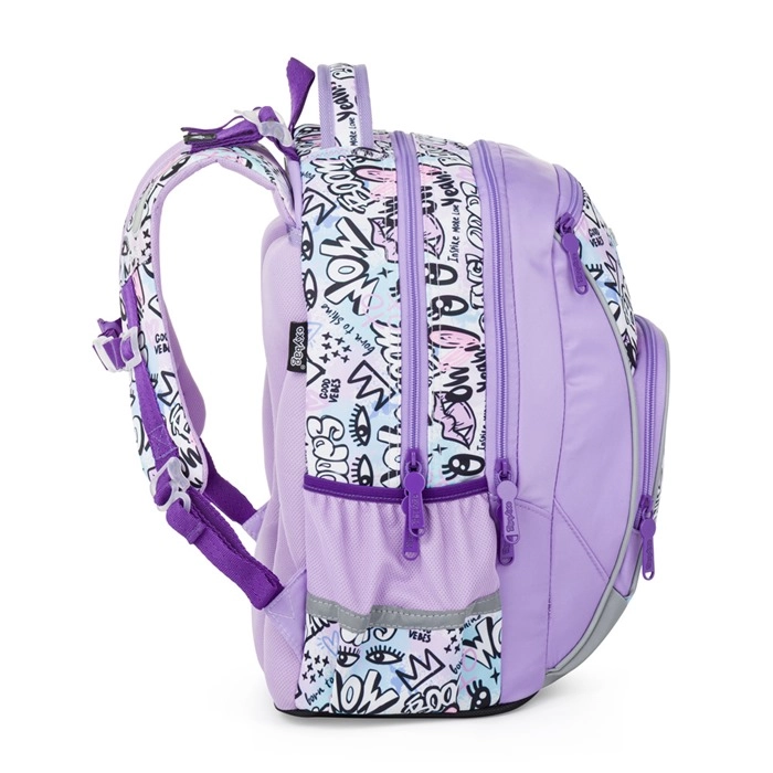 Stilski školski set OXY GO Funny Girl za djevojčice od 1. do 3. razreda kombinira moderan dizajn, ergonomiju i praktičnost. Lagani ruksak s anatomskim stražnjim dijelom, prozračnim podstavama i podesivim naramenicama osigurava udobno nošenje, dok čvrsto vodonepropusno dno i reflektirajući elementi povećavaju izdržljivost i sigurnost. Dio seta su jednokatna pernica i praktična vrećica sa uzicama za tjelesni ili slobodno vrijeme.