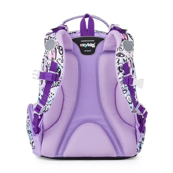 Školski set OXY GO Funny Girl nudi promišljeno rješenje za prve školske godine. Ruksak zapremnine 22 l ima preglednu unutarnju organizaciju za udžbenike i bilježnice, bočne džepove (s patentnim zatvaračem i otvoreni) primjerice za bocu te kukice za učvršćivanje duljih traka. Ergonomski oblikovana i prozračna leđa zajedno s podstavljenim, podesivim naramenicama donose udobnost i pri svakodnevnom nošenju.