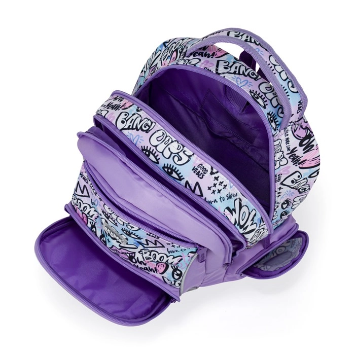 Prostrani glavni odjeljak, praktični unutarnji džepovi, prednji organizator i bočni džepovi (s patentnim zatvaračem i otvoreni) za bocu i sitnice drže školsku opremu uvijek pri ruci.