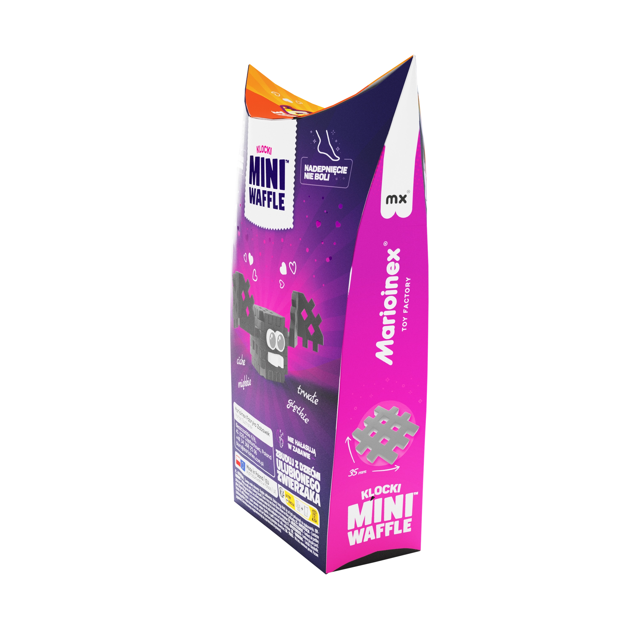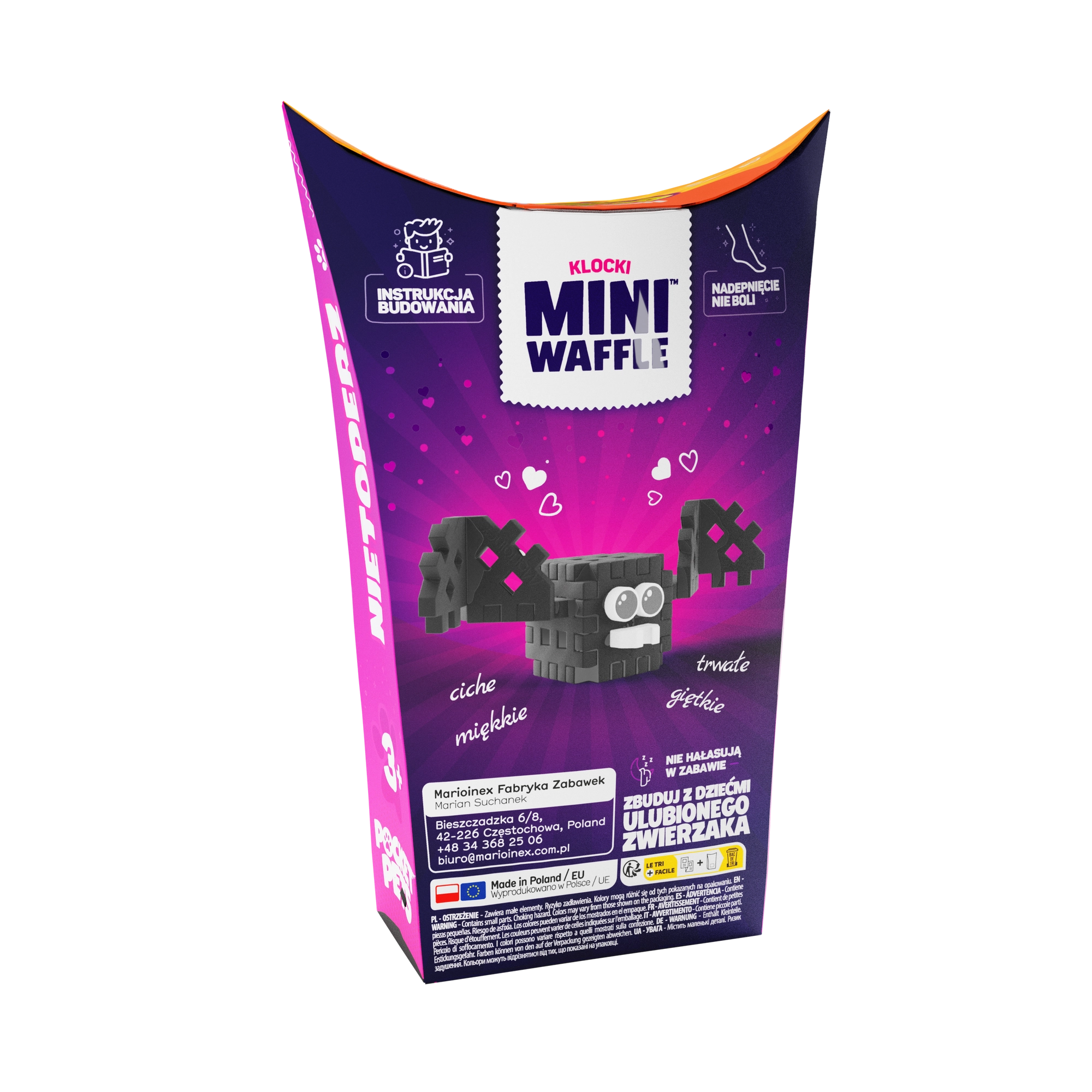 Otkrijte zabavu s konstruktorom Mini Waffle Pocket Pets – šišmiš brenda Marioinex. Kompaktni set s 15 šarenih elemenata omogućuje djeci izgradnju preslatke figurice šišmiša te razvija kreativnost, finu motoriku i logičko razmišljanje. Dijelovi su elastični, izdržljivi i sigurni, lako se spajaju i razdvajaju te odlično odgovaraju drugim setovima Mini Waffle.